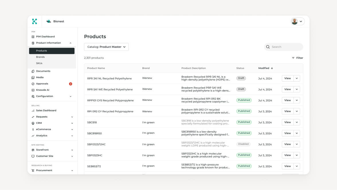We consolidate your raw material portfolio into a single source of truth, with a clean hierarchy of supplier, manufacturer, brand, product and SKU. We eliminate duplicates and outdated information. Then, we enrich records with technical properties, specifications, certifications and all relevant product information.