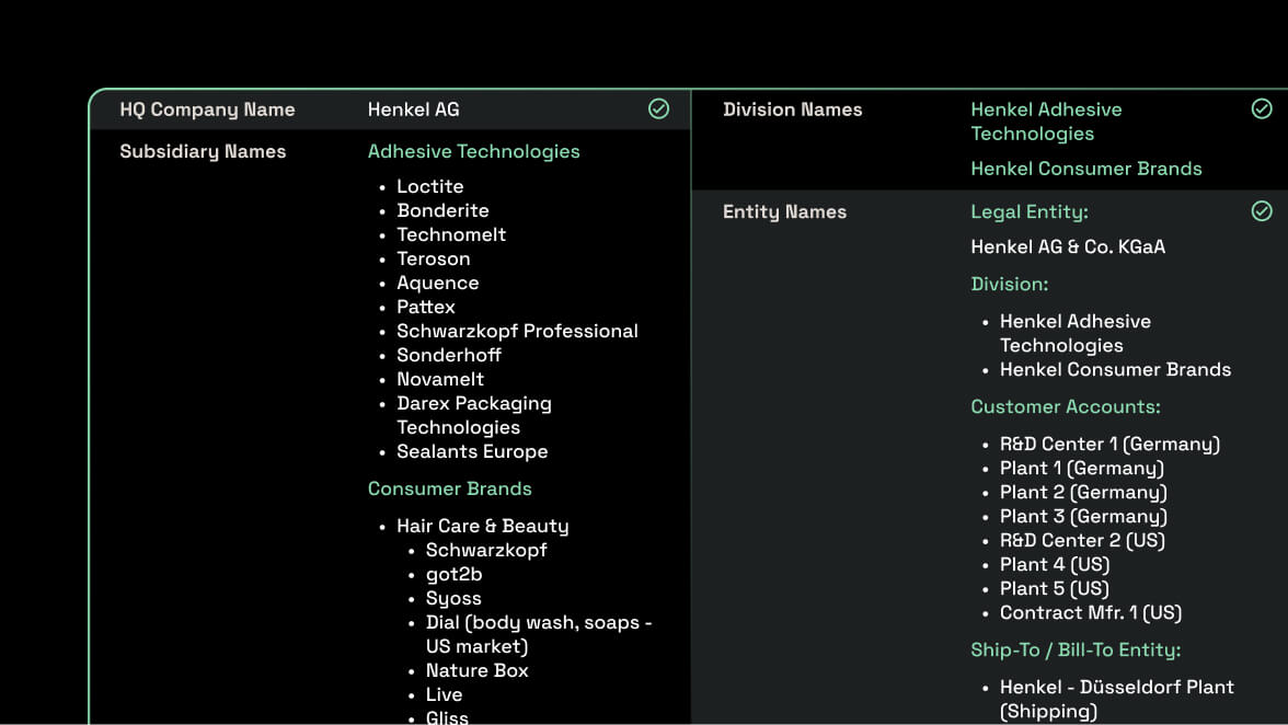 Customer Data Consolidation: Knowde ingests and merges customer records from ERP, CRM and spreadsheets — deduplicating and resolving hierarchies (parent, subsidiary, site).