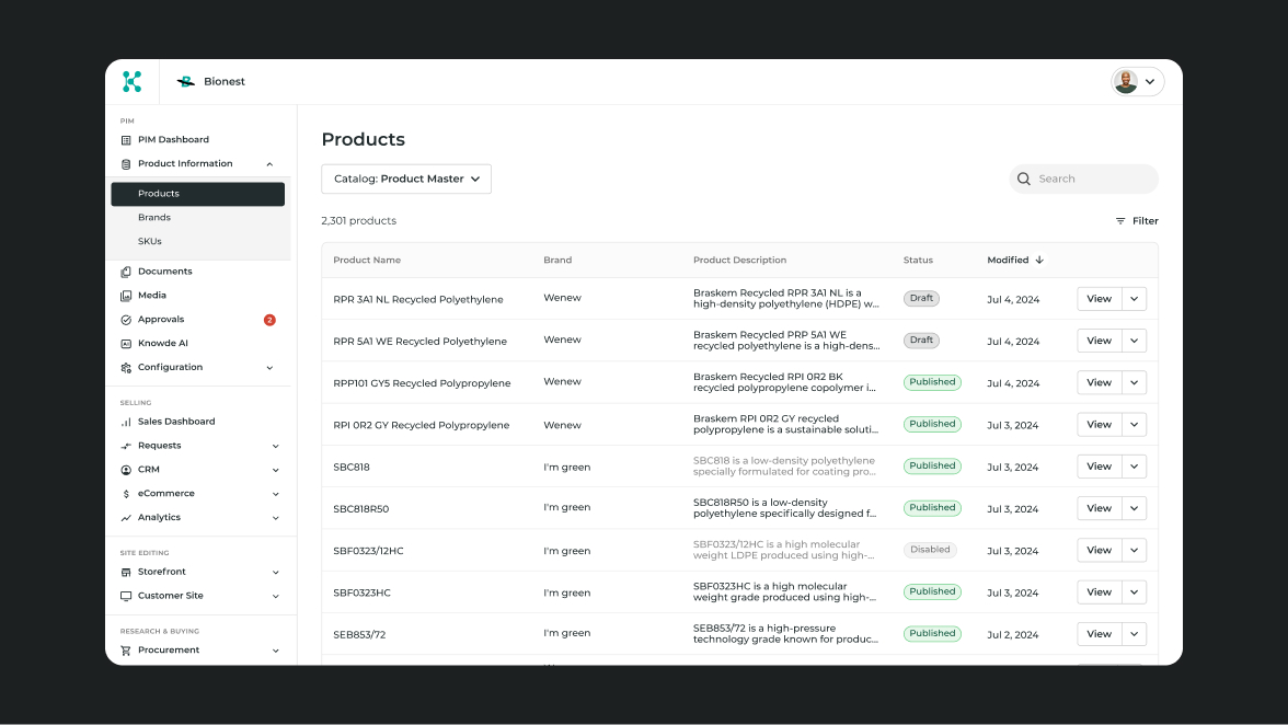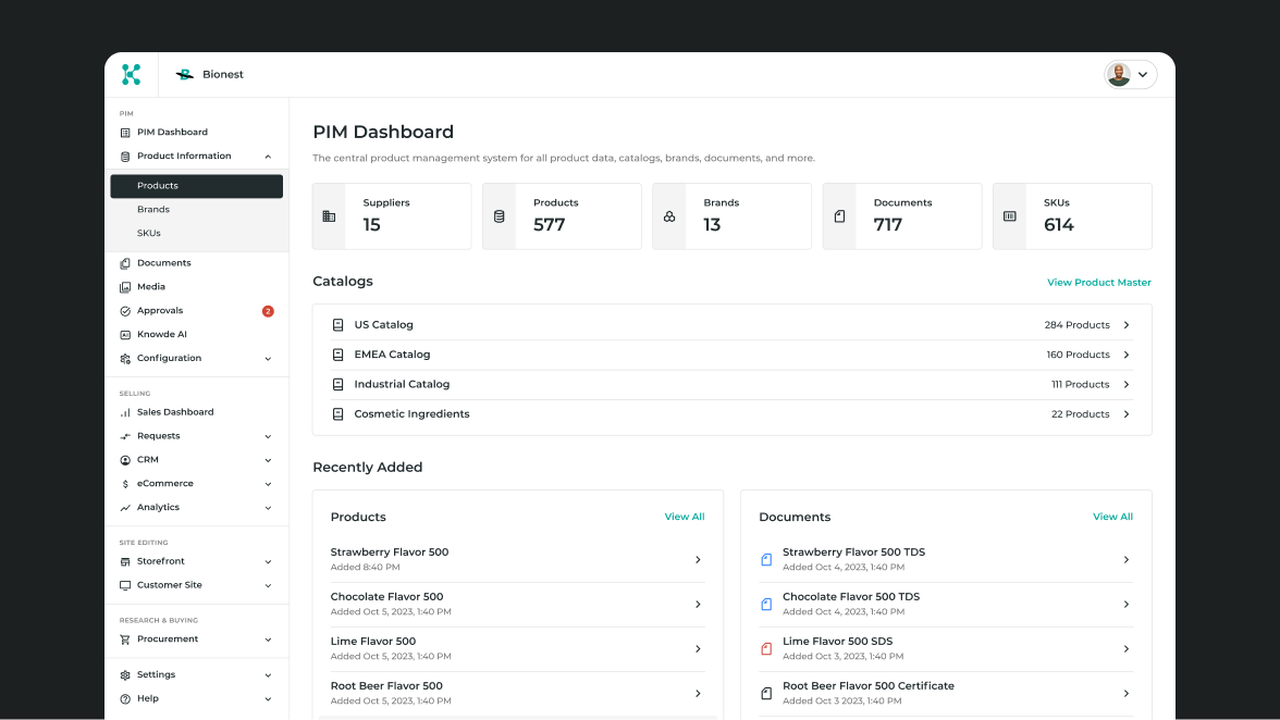Ingest all ERP item masters (materials, customers, vendors), data in other internal systems (e.g. CRM, PMS, etc.) and documents (TDS, SDS, specifications, certifications, statements, etc.) related to products and raw materials.